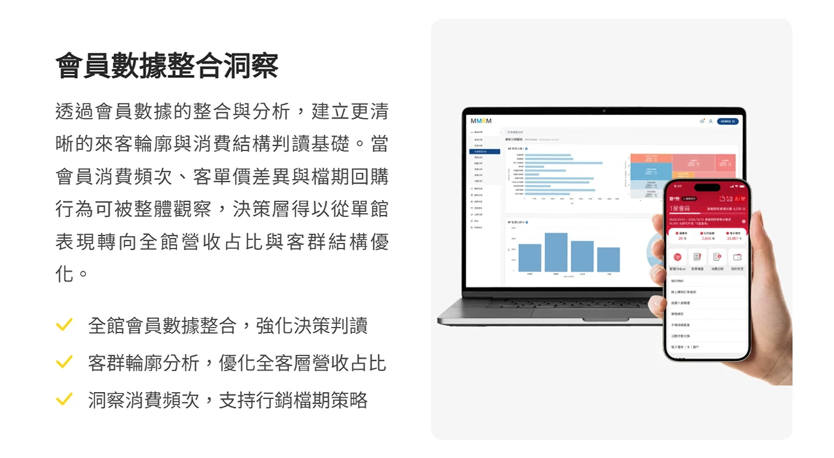 ( 圖:會員數據透過單一的 APP 窗口進行 管理,為決策者提供更完整的 會員輪廓,後續的策略將更有 數據 依據 )