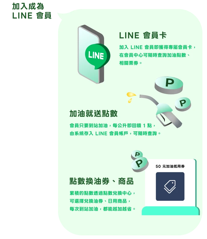 透過 LINE 官方帳號,顧客即可完成加入流程,相關會員權益、加油站點數、累積狀況與兌換內容,都能在同一個會員中心 ( 會員卡 ) 中清楚查詢。這樣的設計,讓支持公益不再需要理解複雜制度,而是自然融入原本就存在的加油行為。對顧客而言,每一次加油站消費,都能即時看見點數回饋;對公益加油站而言,則成功把一次性消費轉化為可追蹤、可累積的長期互動。
