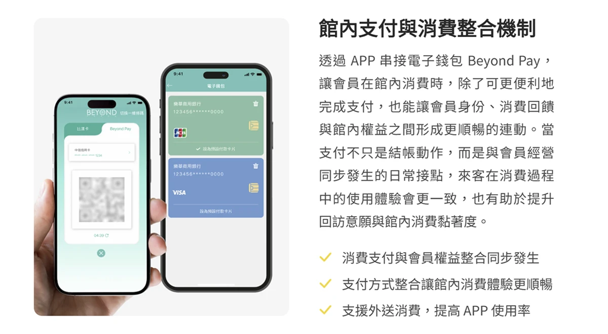 ( 圖:綁定支付的 Beyond Pay,大大提升 APP 的使用率,也有效整合 會員數據 )