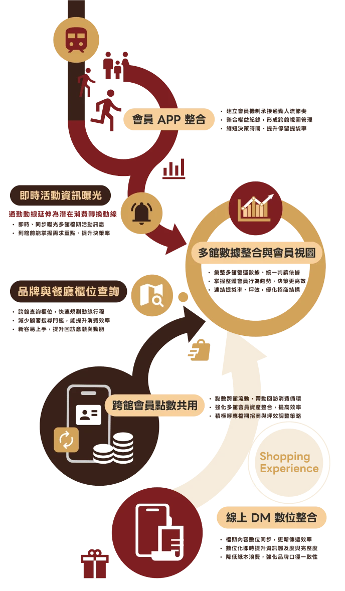更重要的是,跨館共用也讓經營者獲得「整體視圖」。當消費在館別之間流動,經營者能夠看見不再只是單館營收,而是屬於品牌整體會員的互動路徑。路徑一旦被看見,就能被規劃;一旦掌握這些路徑,擴張就能有更高效的模型可以複製。