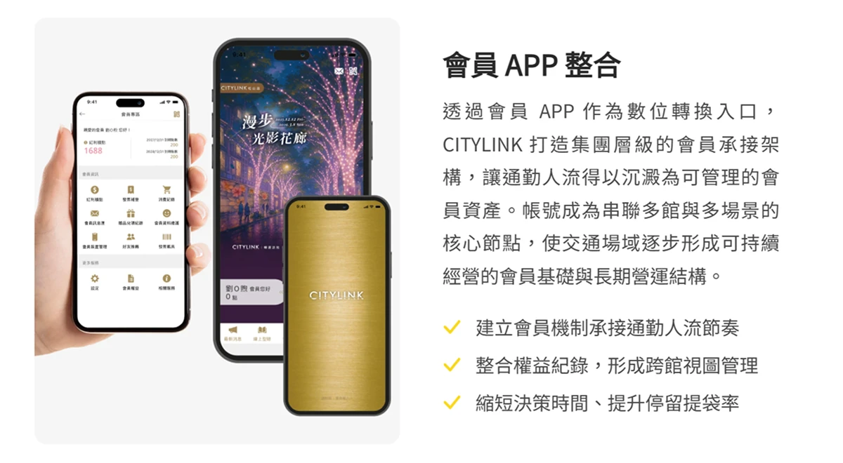 ( 圖:透過 會員 APP,CITYLINK 能從 會員經營、營運管理、數據整合等方面打造穩健的營收模型 )