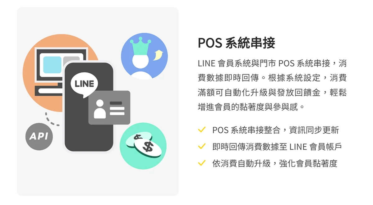( 圖:POS 系統串接讓所有 消費數據 都能同步到 LINE 會員帳戶 )