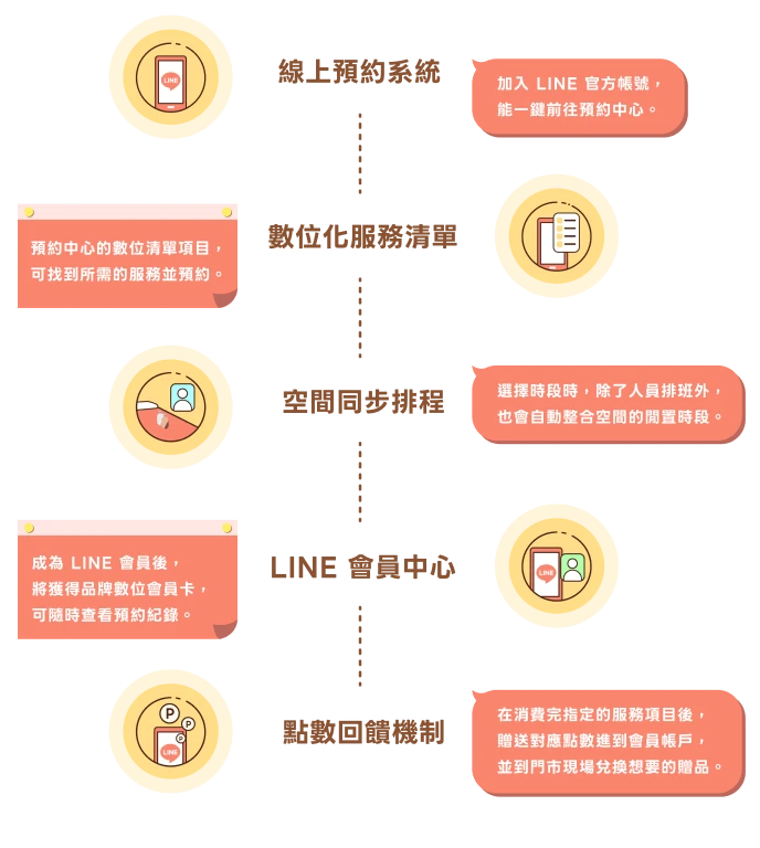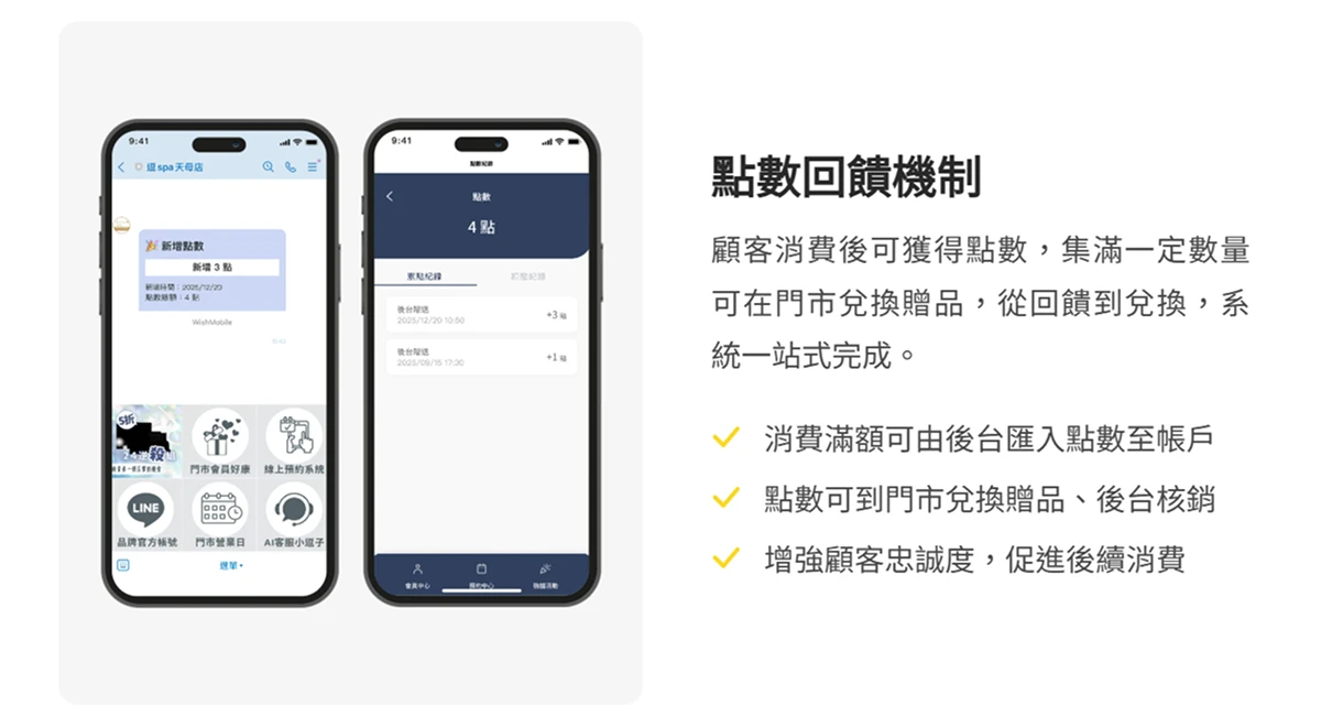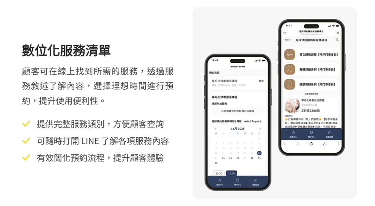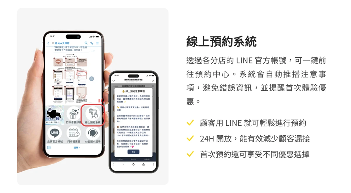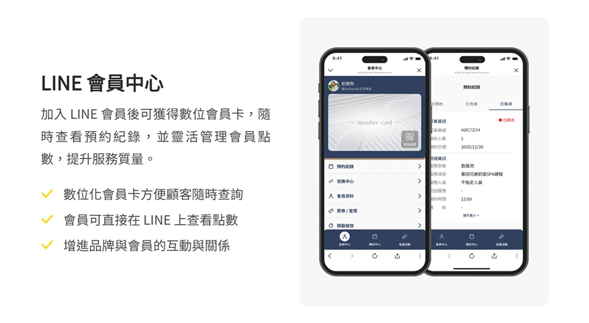 LINE 作為大眾常用即時通訊工具,易於台灣各年齡層用戶上手,無論預約療程、查詢 Spa 保養紀錄或點數查詢,都能自助完成。對年輕族群而言,數位會員卡與點數回饋等設計,也更貼合其行動消費習慣,讓高專業服務項目展現新活力。