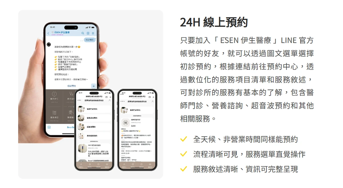 ( 圖:有 LINE 預約系統,24H 隨時可以預約看診 )