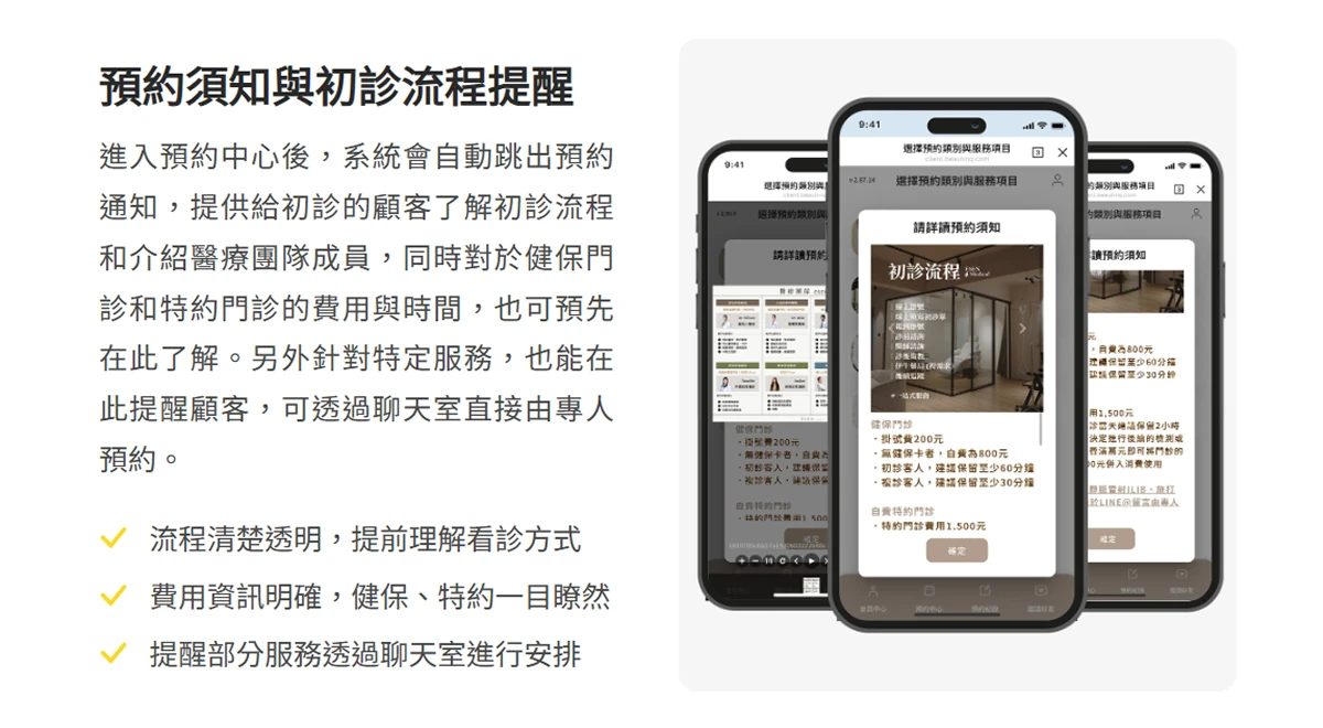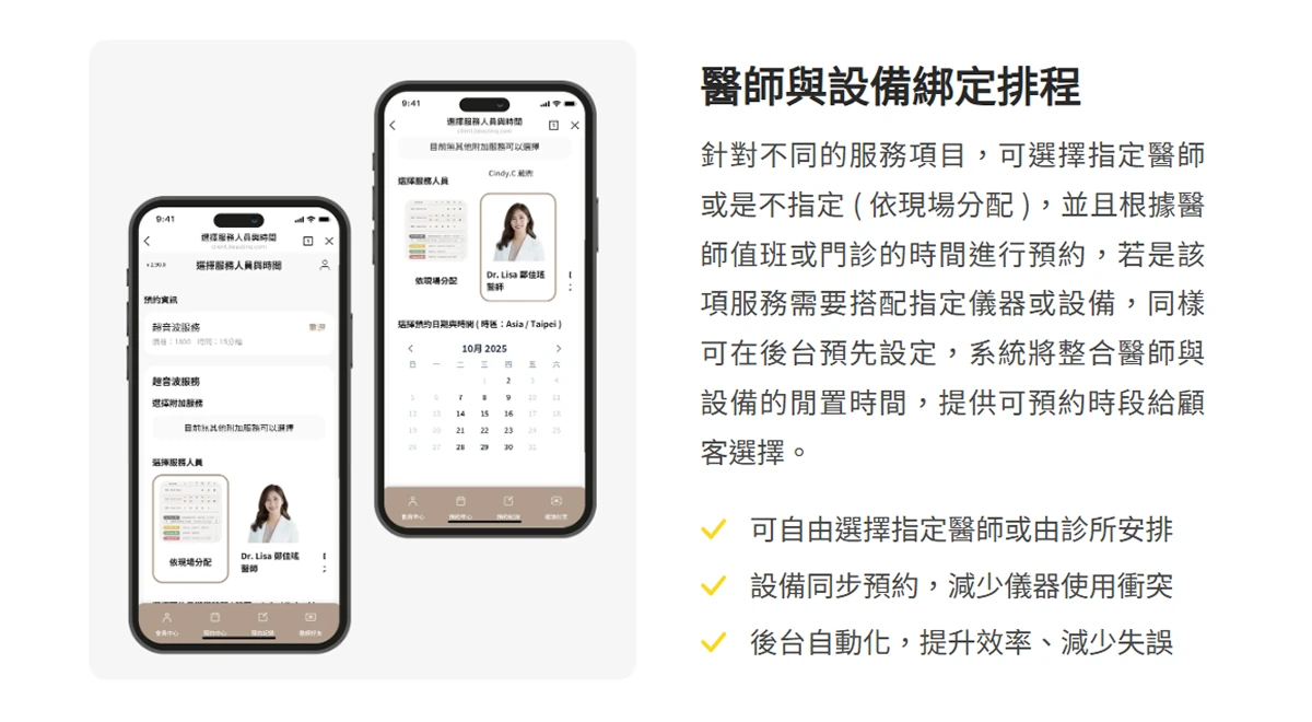 對顧客來說,這意味著「選擇即保證完整服務」;對診所而言,則是減少人工調整與人為錯誤的最佳方案。