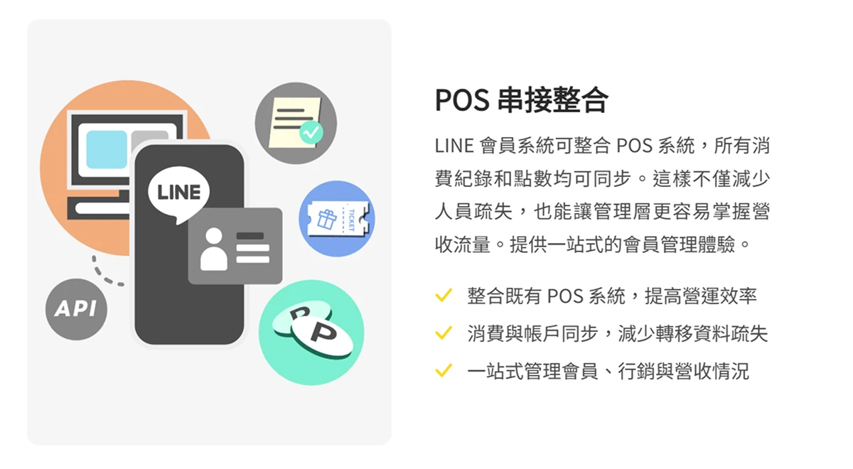 ( 圖:LINE 會員系統直接串接 POS 能有效減少 會員經營 的資料斷層 )