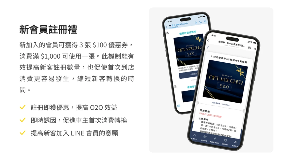 ( 圖:加入會員即可獲得註冊禮,優惠券 讓線上會員更容易透過 O2O 機制 導流制店裡消費 )