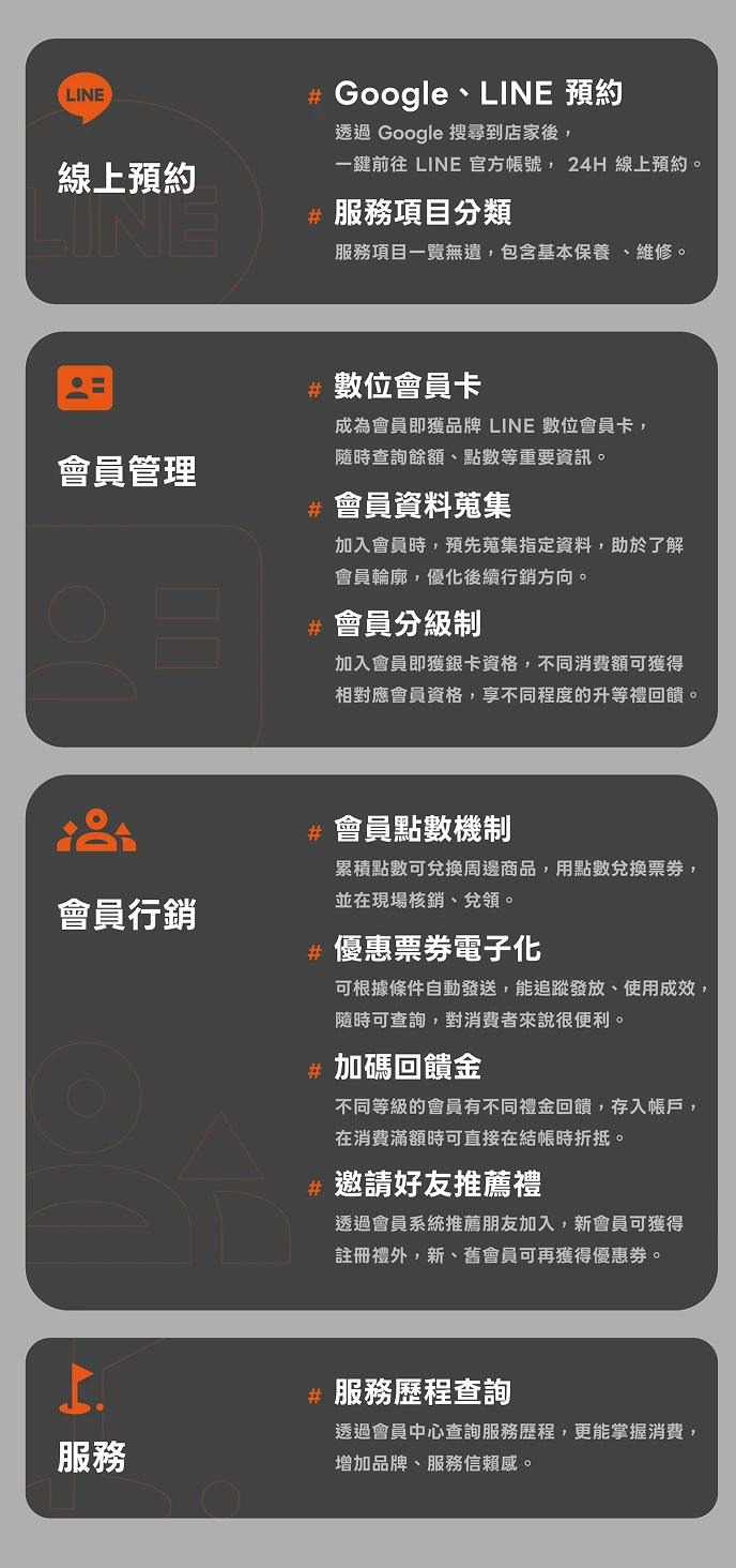 ( 圖:服務歷程可一併被記錄在 LINE 會員系統 中,店家和顧客都能同步查詢 )