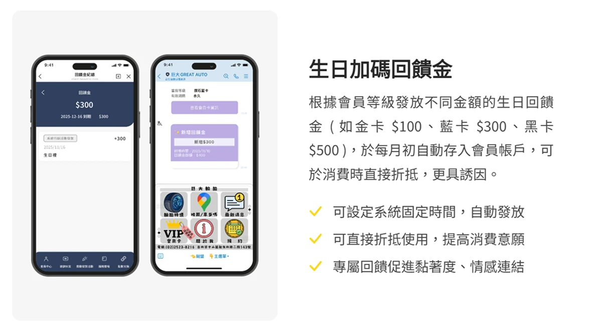 ( 圖:不同等級的會員在生日時發放 回饋金,提醒、鼓勵回店 )
