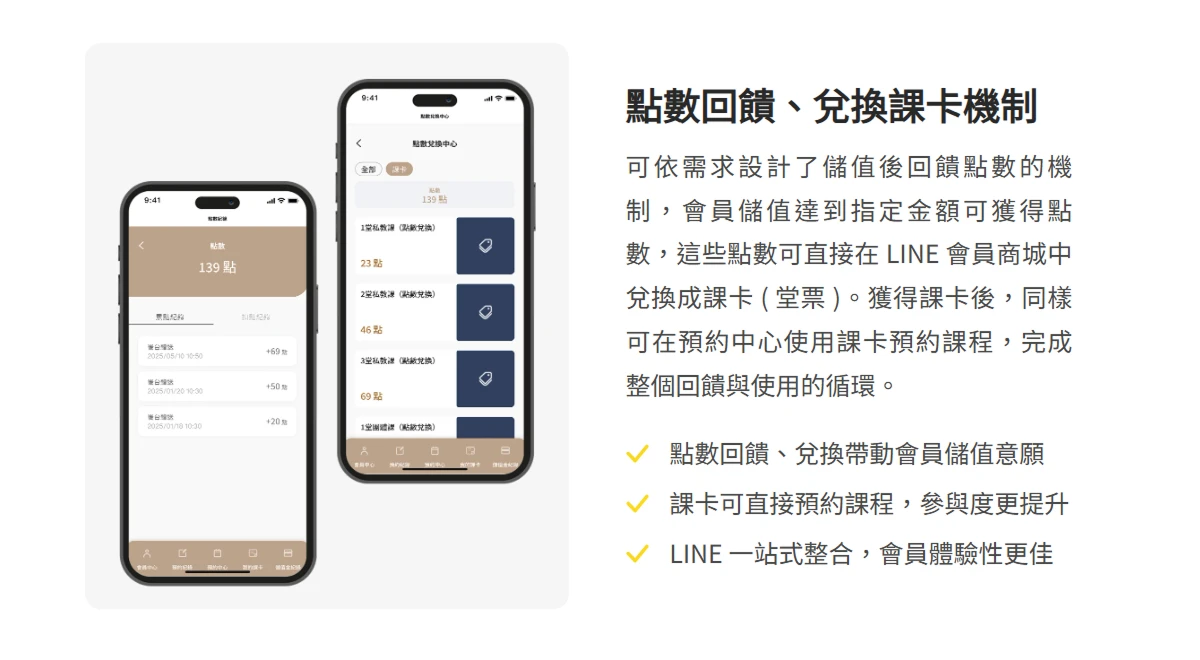 這樣的 點數兌換 機制,讓會員在消費後能立即感受到回饋價值,進而提高持續消費的意願。對學員而言,點數回饋就像是一種額外的獎勵;對工作室而言,則是提升預收現金、確保學員回流的有效手段。當會員拿著點數兌換的課卡再次回到課程中,便形成了一個完整的消費循環,讓品牌能在長期經營中建立穩定的會員關係。