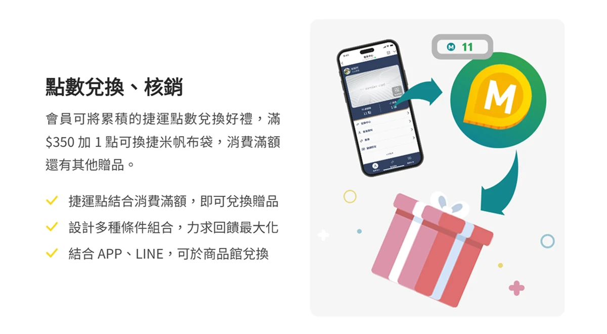 再者,會員憑藉數位會員卡及 點數平台 可隨時查詢消費紀錄、捷運點及票券,減少資訊不透明的疑慮。每一次的消費集點與捷運集點,皆可即時顯現在會員平台,確保累積的點數真實有效。消費者可於指定商品館兌換各種好禮,不必擔心點數作廢與冗長流程。