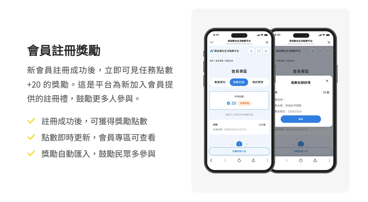 會員註冊獎勵:任務點數 +20,立即激勵集點參與