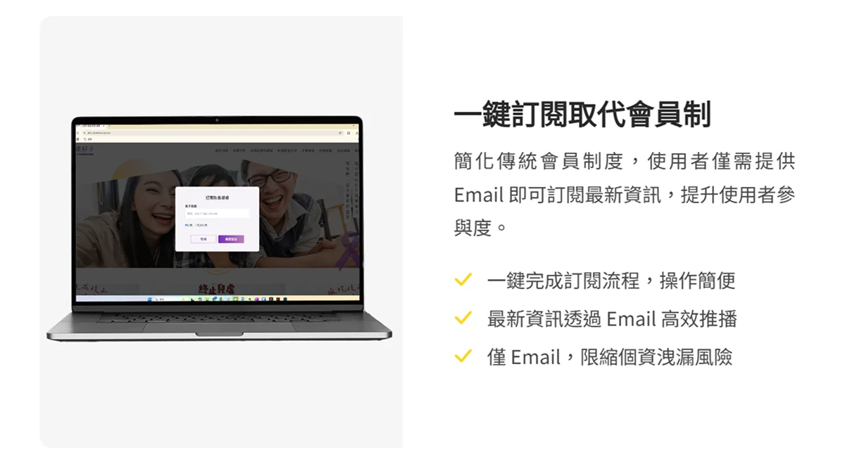 ( 圖:輸入 Email 即可訂閱資訊,省去繁複的註冊手續 )