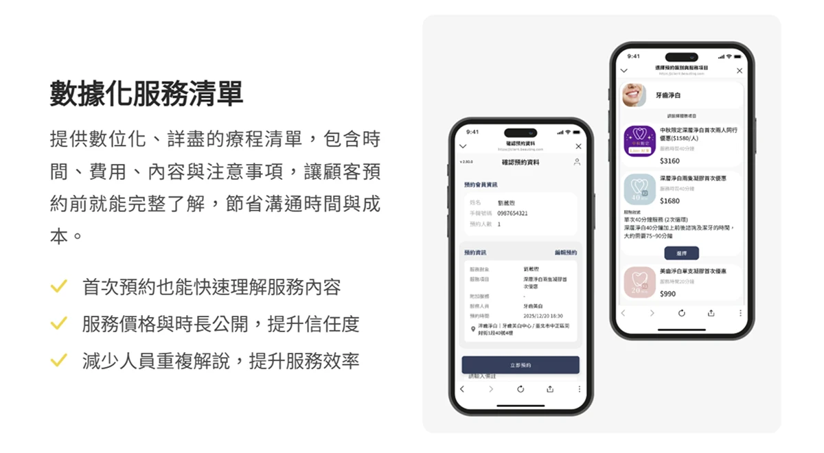 預約系統必備功能 2:數據化服務清單,第一次做牙齒淨白也不怕矇