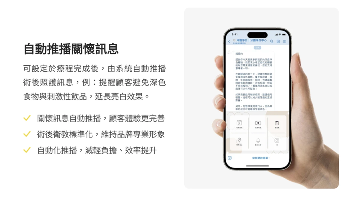 預約系統必備功能 4:自動推播術後關懷,延續亮白成效,提升專業信任