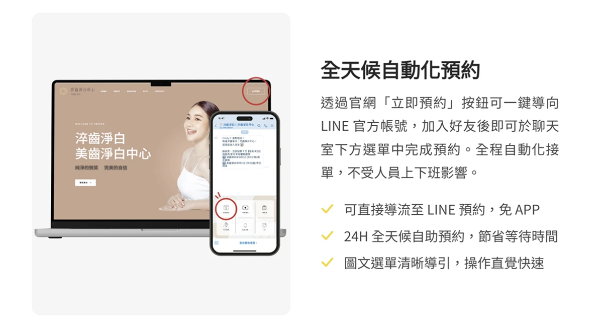 預約系統必備功能 1:一鍵預約,24 小時預約淨白美齒