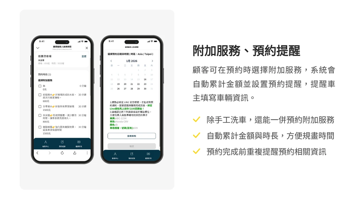 附加服務選擇與預約提醒:兼顧彈性與精準管理