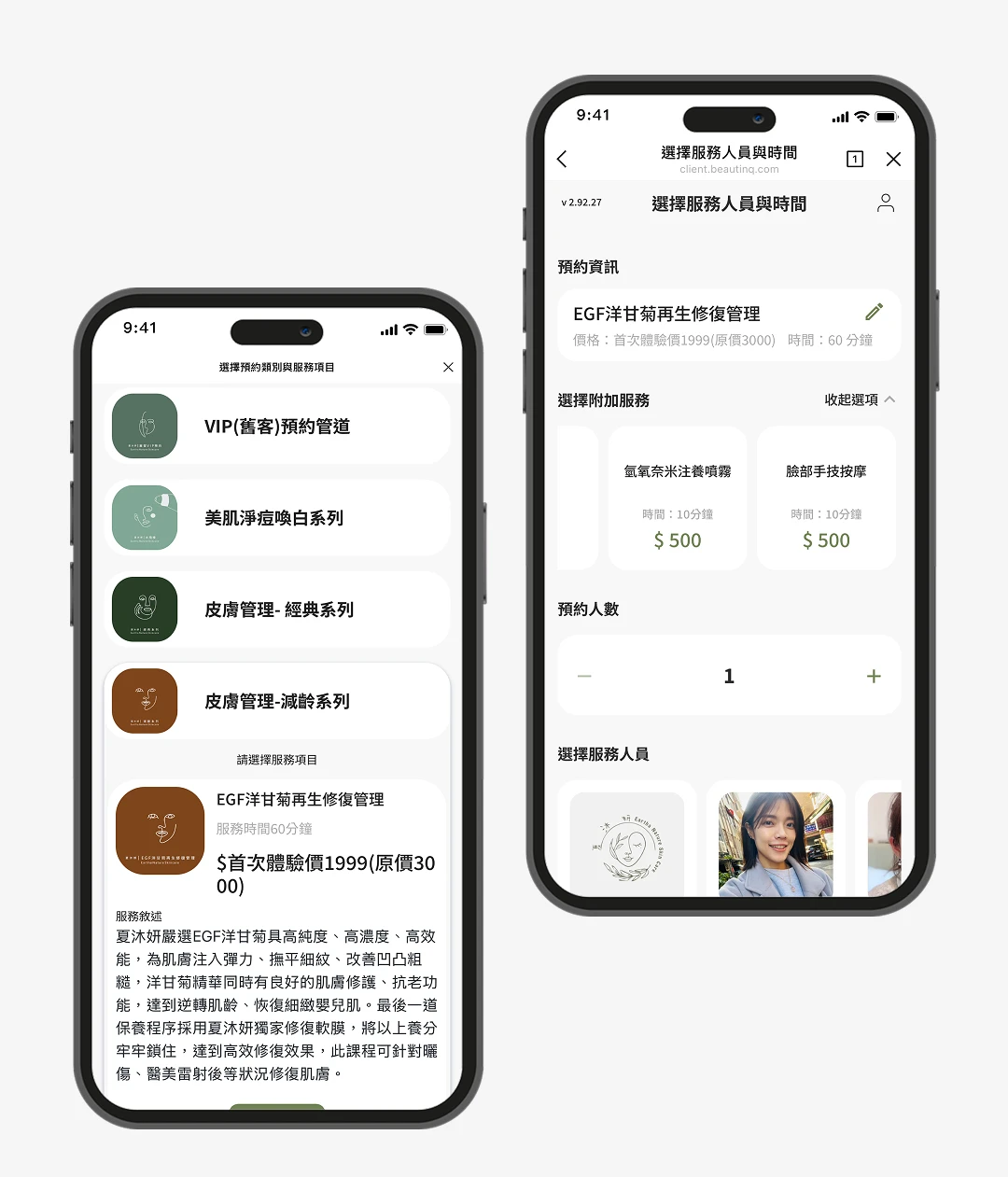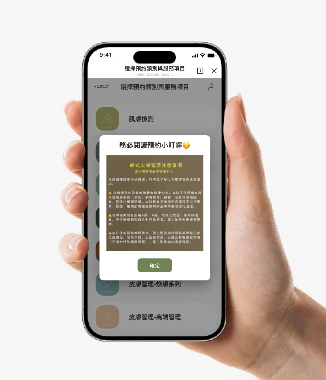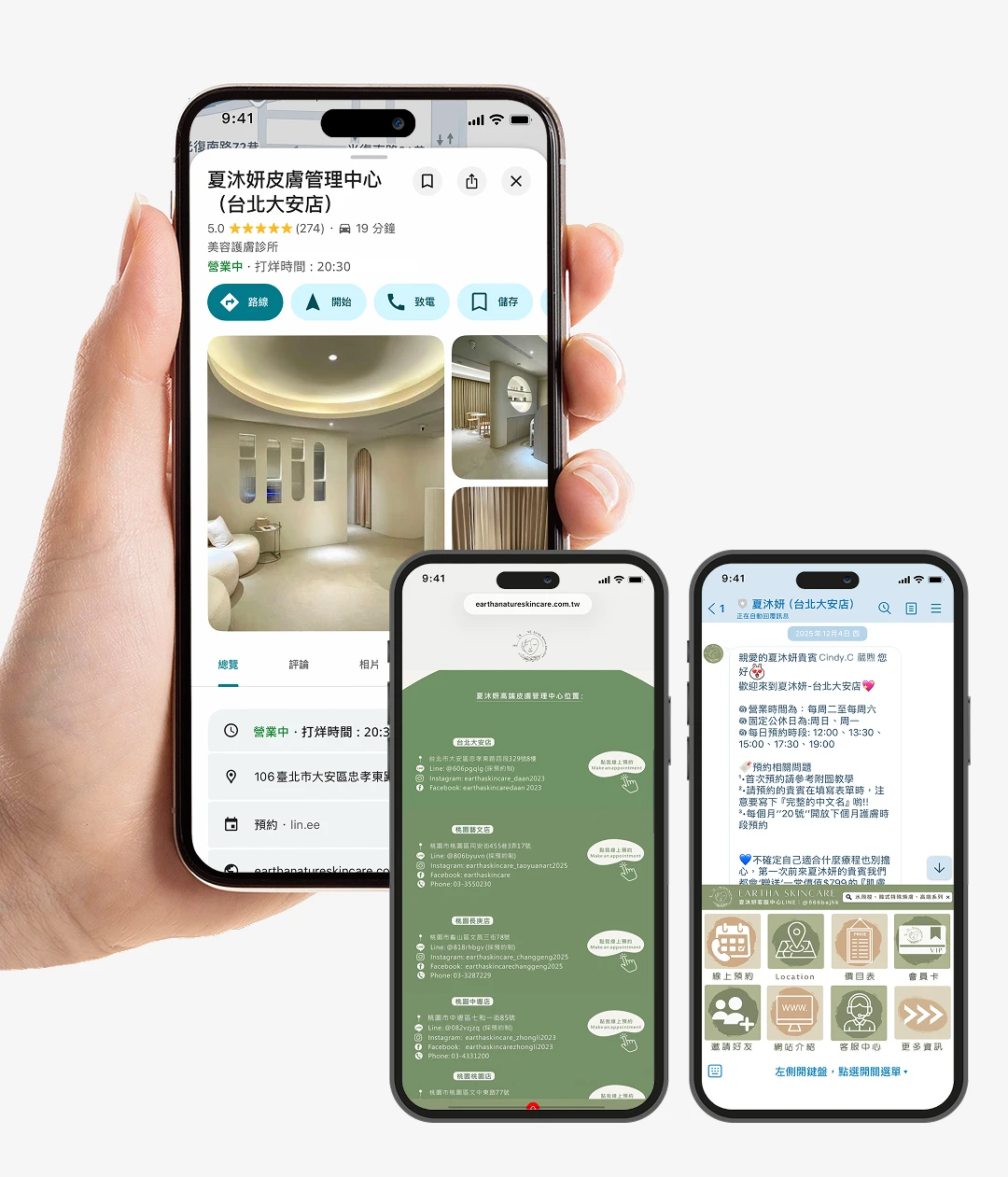 夏沐妍高端皮膚管理中心採用美業歐巴的 LINE 預約系統,讓顧客能夠隨時隨地自助預約,提升了服務便利性。顧客可透過官網、Google Maps 或 LINE 官方帳號進入預約中心,全天候 24 小時不受營業時間限制進行預約,避免了潛在客戶漏單的情況。此外,系統會自動推播預約須知及即時優惠活動,幫助顧客建立服務共識。