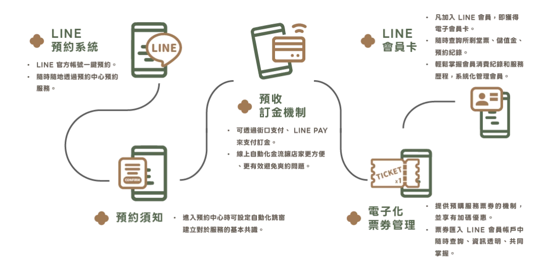 訂金機制與票券管理不僅保障店方避免爽約,也讓顧客享有優惠與靈活性:預先購買票券享優惠,訂金若提前取消可轉為儲值金。電子票券與 LINE 會員卡的整合,讓顧客能在會員中心隨時查看票券餘額、儲值金及預約紀錄;對店家來說,也能系統化追蹤會員消費與服務歷程,大幅提升會員忠誠與回訪率。