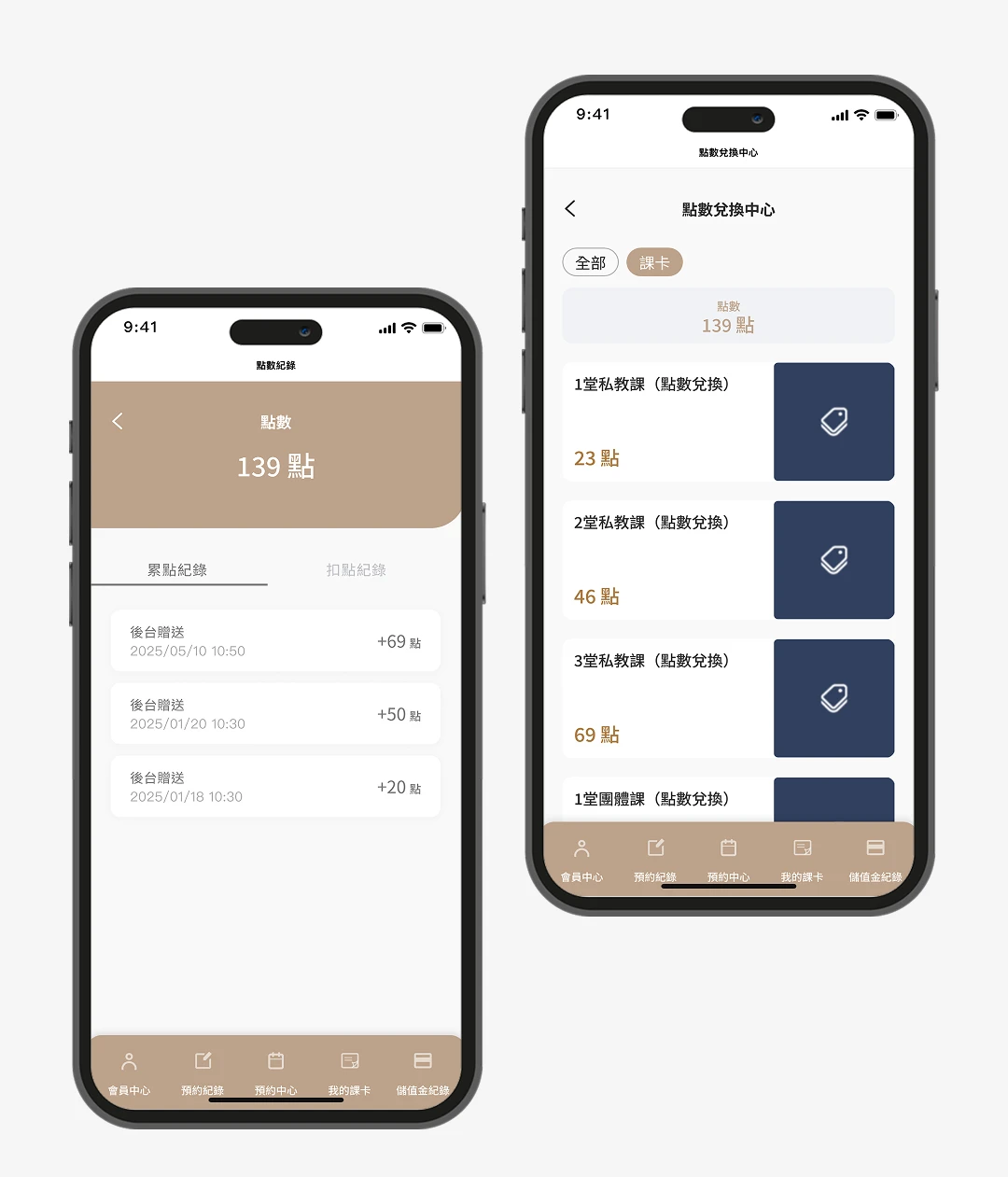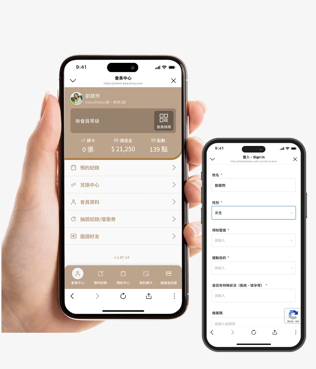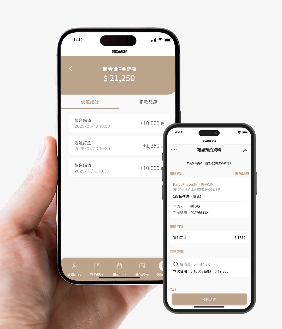 學員提前購買課卡後,由工作室人員匯入會員帳戶,學員在預約時直接選用堂票核銷;而點數兌換課卡機制與會員儲值功能,則透過回饋促使會員預先儲值、提高會員黏度與預付收入,降低現場行政負擔與線上金流手續成本。這一整套流程,使 Kalos Pilates 極‧美學在會員體驗與內部營運效率上,皆達到更高標準。