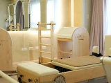 Kalos Pilates 極‧美學器械式皮拉提斯工作室位於新竹竹北,以器械訓練為核心,強調一對一私教與小班團體課程的專業教學模式。其空間設計採用溫柔奶茶色調與明亮自然光,透過拱形落地窗與精緻配置的器械與鏡面,營造安定放鬆的氛圍,讓學員在舒適中專注呼吸與體態調整。品牌定位為不只雕塑體型、練核心,更希望每位學員能在運動中找到身心的舒緩與平衡。