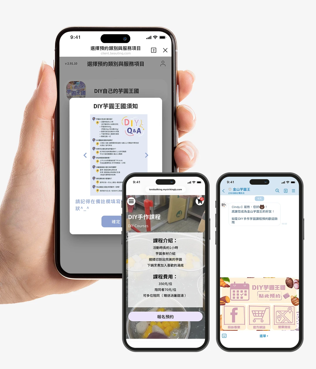 金山芋圓王利用生活歐巴 LINE 預約系統,為顧客提供便捷的預約體驗。顧客可透過官網或 LINE 官方帳號輕鬆進入預約系統,並自動接收預約須知,涵蓋 DIY 芋圓的注意事項等。系統可依據參與人數靈活預約,並可根據陪同人數選擇附加服務,顧客滿意度顯著提升。