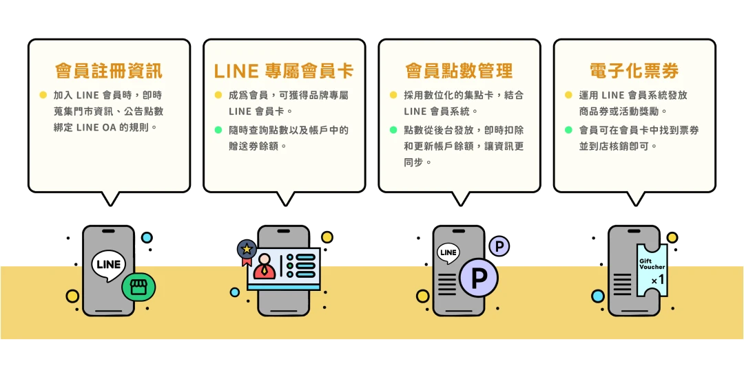 為了進一步強化會員經營與數位互動,綠森藝術 DIY 導入生活歐巴 LINE 會員系統,將會員註冊、數位會員卡、點數管理、電子票券系統串聯於 LINE 官方帳號中。當顧客加入品牌 LINE 的會員時,就可預先根據門市進行選擇與資料註冊,系統也會自動推播點數規則與公告,會員可即時掌握優惠規則、點數累積與歷史核銷紀錄。這樣的流程設計解決了傳統紙本卡片易遺失、人工推播繁瑣、會員資訊分散等痛點。